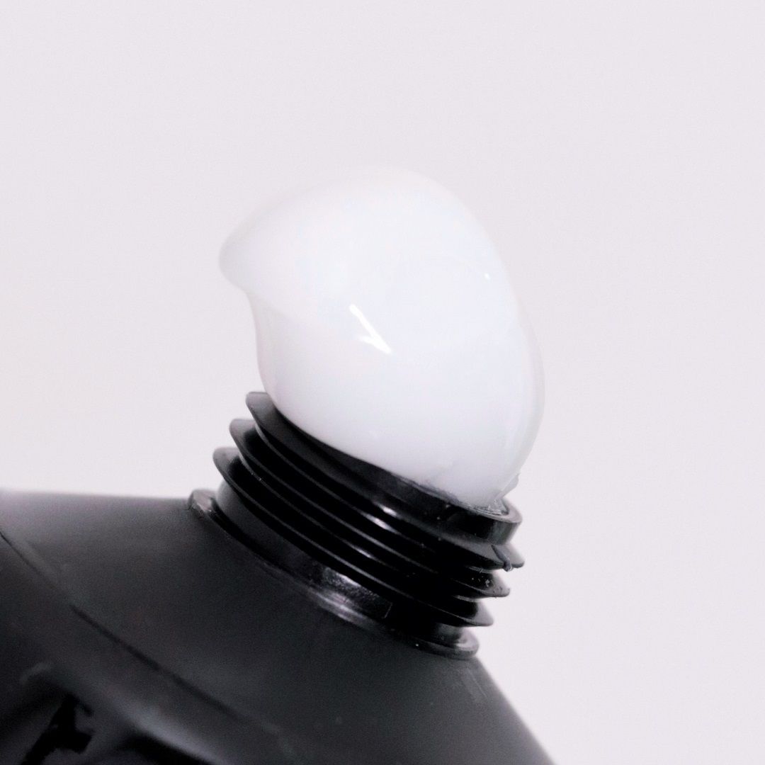 Akrylożel w odcieniu mlecznym, zakrywający drobne niedoskonałości, nadaje wymodelowanym paznokciom świeży i naturalny wygląd.