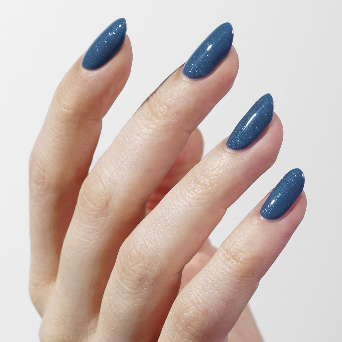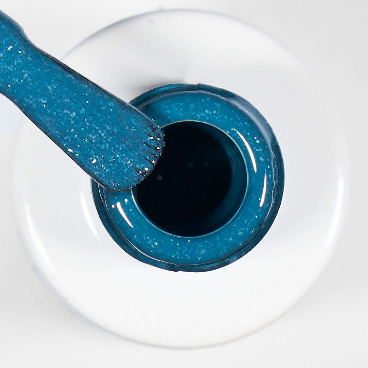 Głębia oceanu, promienie słońca przebijające się przez lazurową wodę tworzące błyszczące flary światła i wody. Tak chyba najlepiej jest opisać kolor tego lakieru hybrydowego z drobnymi, mieniącymi się drobinkami.