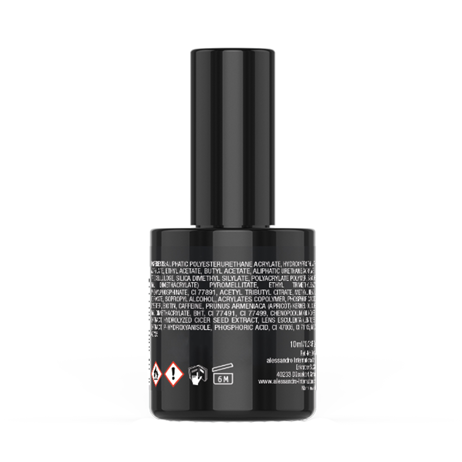 ALIPHATIC POLYESTERURETHANE ACRYLATE, HYDROXYPROPYL METHACRYLATE, ETHYL ACETATE, BUTYL ACETATE, ALIPHATIC URETHANE ACRYLATE, NITROCELLULOSE, SILICA DIMETHYL SILYLATE, POLYACRYLATE POLYMER, BIS(GLYCERYL DIMETHACRYLATE) PYROMELLITATE, ETHYL TRIMETHYLBENZOYL PHENYLPHOSPHINATE, CI 77891, ACETYL TRIBUTYL CITRATE, METHYL BENZOYLFORMATE, ISOPROPYL ALCOHOL, ACRYLATES COPOLYMER, PHOSPHORIC ACID POLYESTER, BIOTIN, CAFFEINE, PRUNUS ARMENIACA (APRICOT) KERNEL OIL, GLYCERYL DIMETHACRYLATE, BHT, CI 77491, CI 77499, CHENOPODIUM QUINOA SEED EXTRACT, HYDROLYZED CICER SEED EXTRACT, LENS ESCULENTA (LENTIL) SEED EXTRACT, P-HYDROXYANISOLE, PHOSPHORIC ACID, CI 47005, CI 71105, MEK, CI 60725