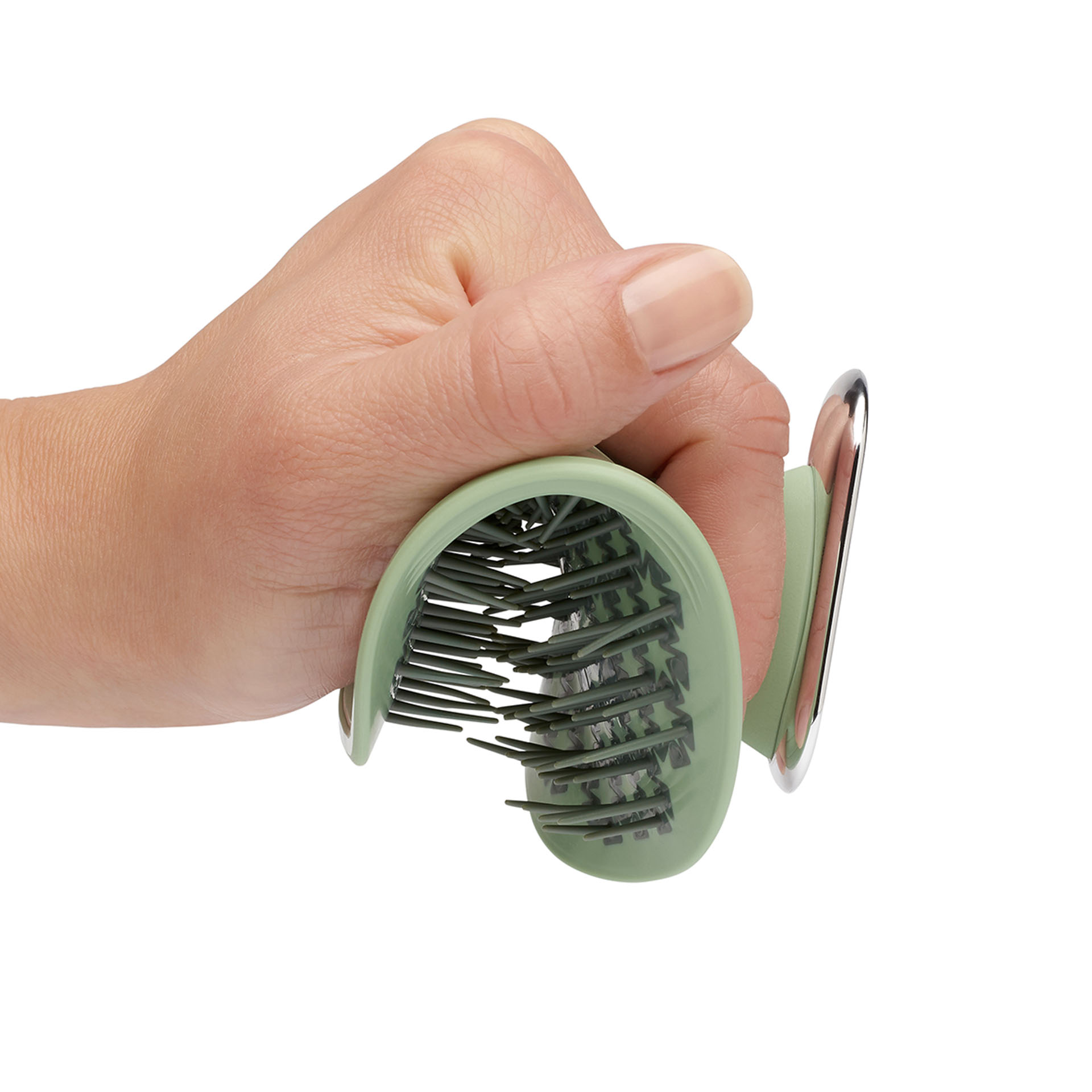 Szczotka MANTA® Serene Green / White Gold  – profesjonalna szczotka w kolorze zielono-złotym, delikatnie rozczesująca włosy bez łamania. Technologia FLEXGUARD™ zapewnia pełny ruch włosia 360°, dopasowując się do dłoni i skóry głowy. Odporna na wysokie temperatury, antystatyczna – dla zdrowego wzrostu włosów.