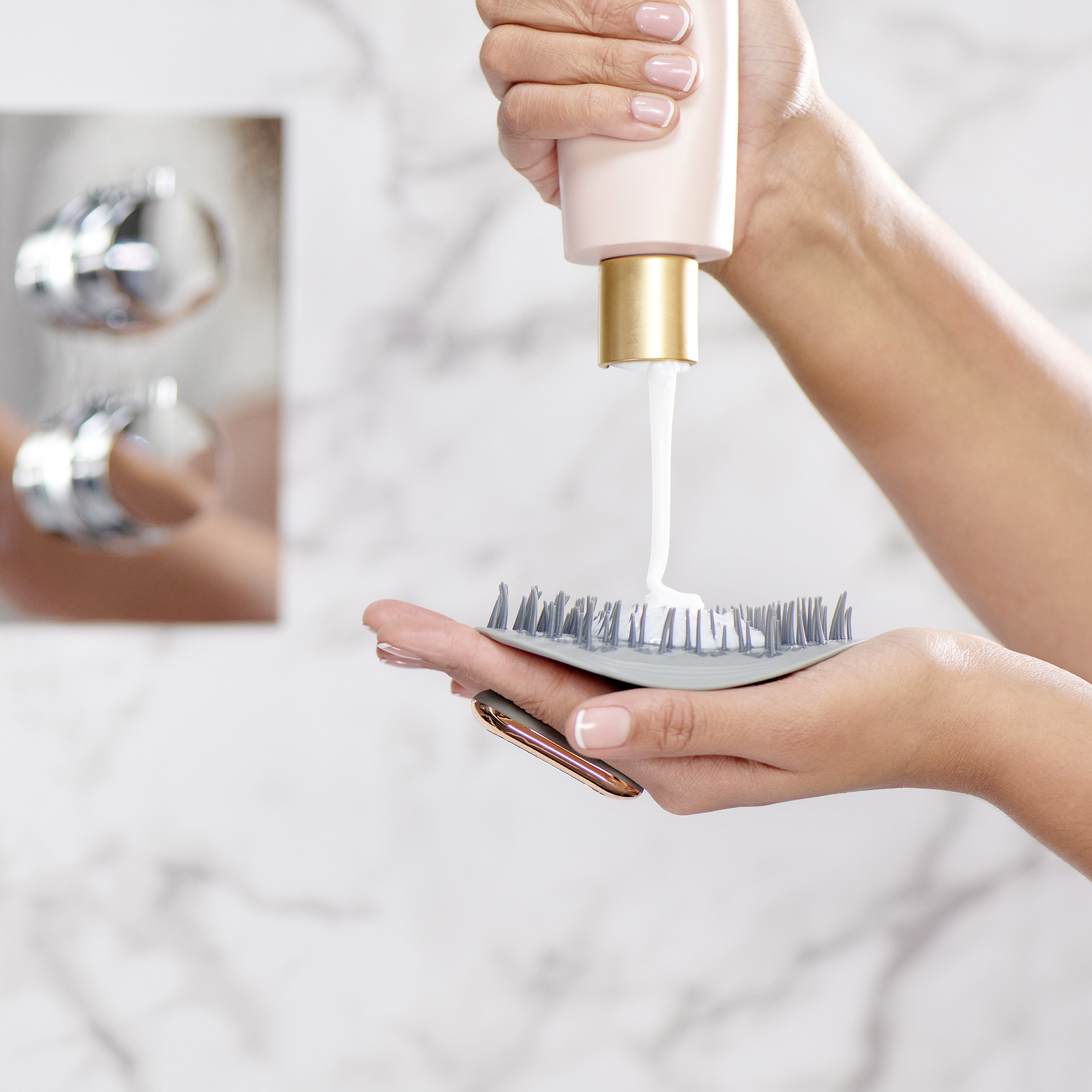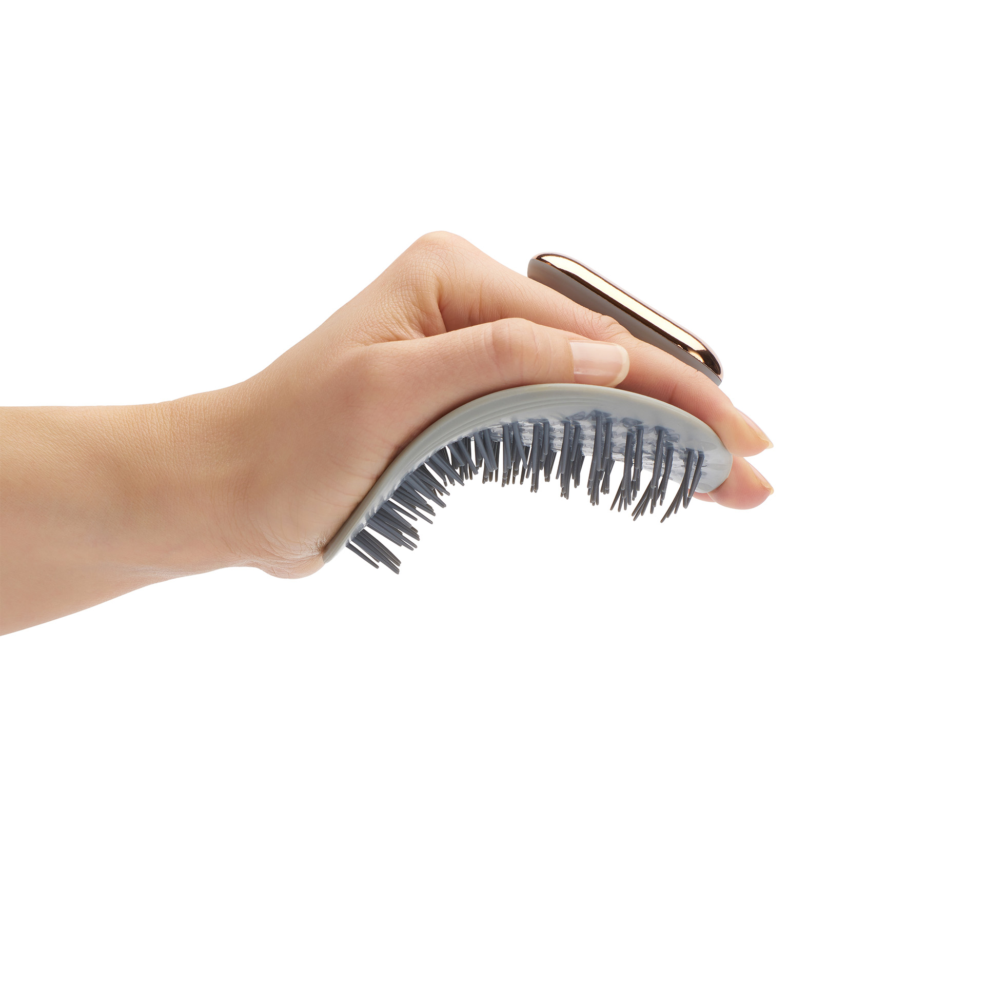 Innowacyjna szczotka MANTA® Pulse Grey Pink Gold z masażerem delikatnie rozczesuje mokre i suche włosy w celu zminimalizowania ich łamania. Elastyczne włosie i podstawa masują i złuszczają skórę głowy dla zdrowego wzrostu włosów. Magnetyczne pulsacje stymulują skórę głowy zwiększając przepływ krwi i krążenie do mieszków włosowych.