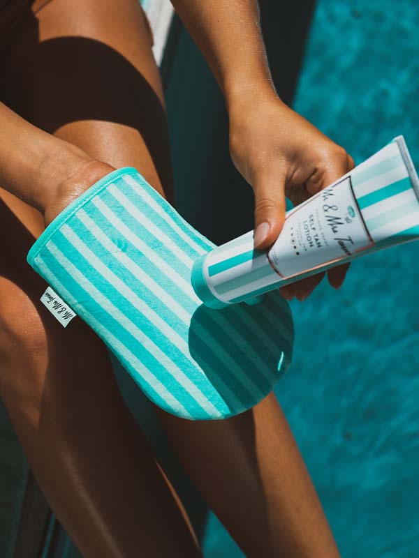 W przypadku używania z naszym Mr & Mrs Tannie Whipped Tan Mousse lub Self Tan Lotion, nałóż produkt bezpośrednio na rękawicę i wmasuj w skórę okrężnymi ruchami. W przypadku stosowania z Mr & Mrs Tannie Clear Tannie Mist, nałóż produkt bezpośrednio na skórę i użyj rękawicy do samoopalacza, aby rozprowadzić i wyrównać opaleniznę. Rękawicę można prać w 30° i jest wielokrotnego użytku.